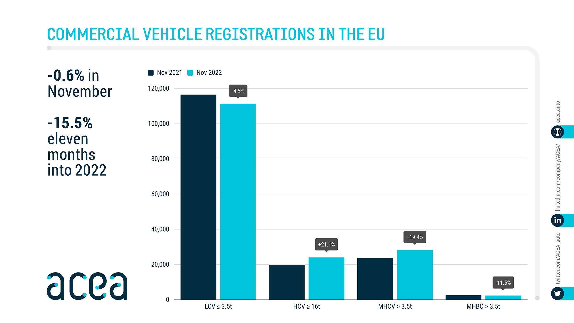 Commercial vehicle registrations: -15.5% eleven months into 2022; -0.6% in November